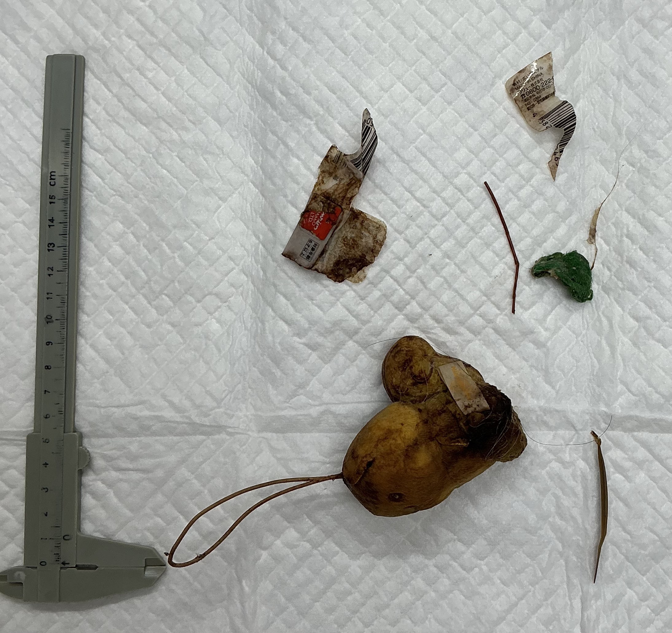 ぬいぐるみ以外にも異物があったので一緒に摘出しました。